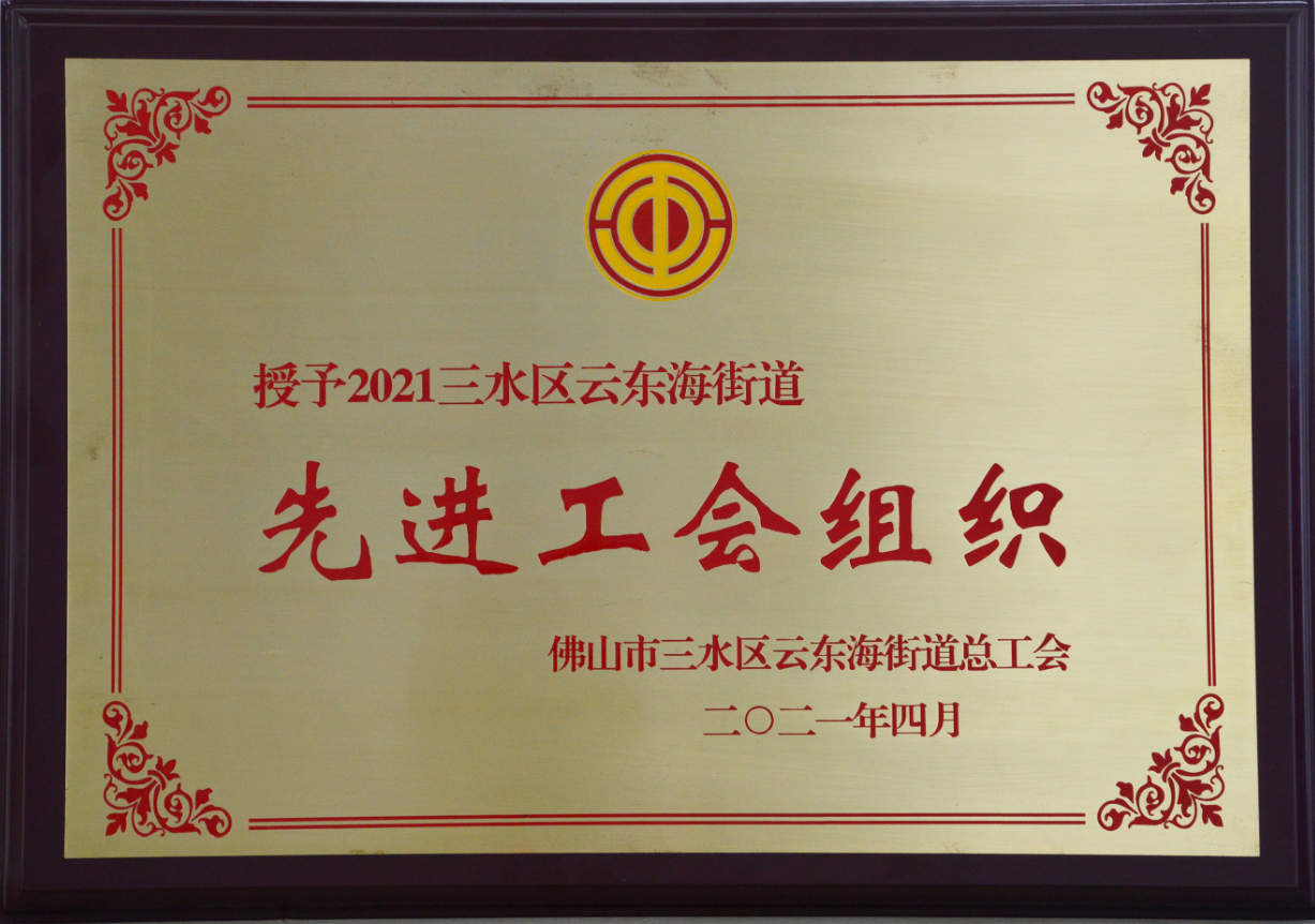 2021年4月,金银河被三水区云东海街道总工会评为“先进工会组织”。 本次获奖是对金银河在云东海高质量发展成绩的充分肯定,该荣誉旨在弘扬劳模精神,培育新时代工匠,营造劳动光荣的社会风尚,激励广大职工团结奋斗、勇往向前,建设一支知识型、技能型、创新型的高素质劳动者队伍,用智慧和劳动创造推动云东海高质量发展。