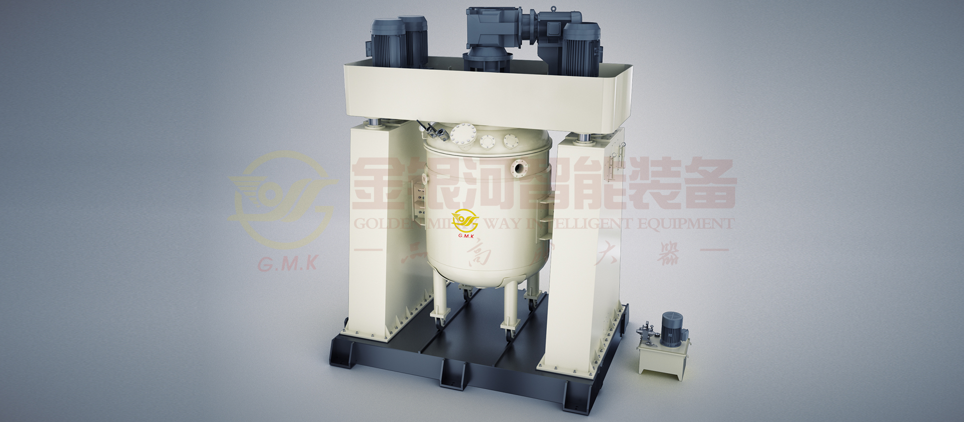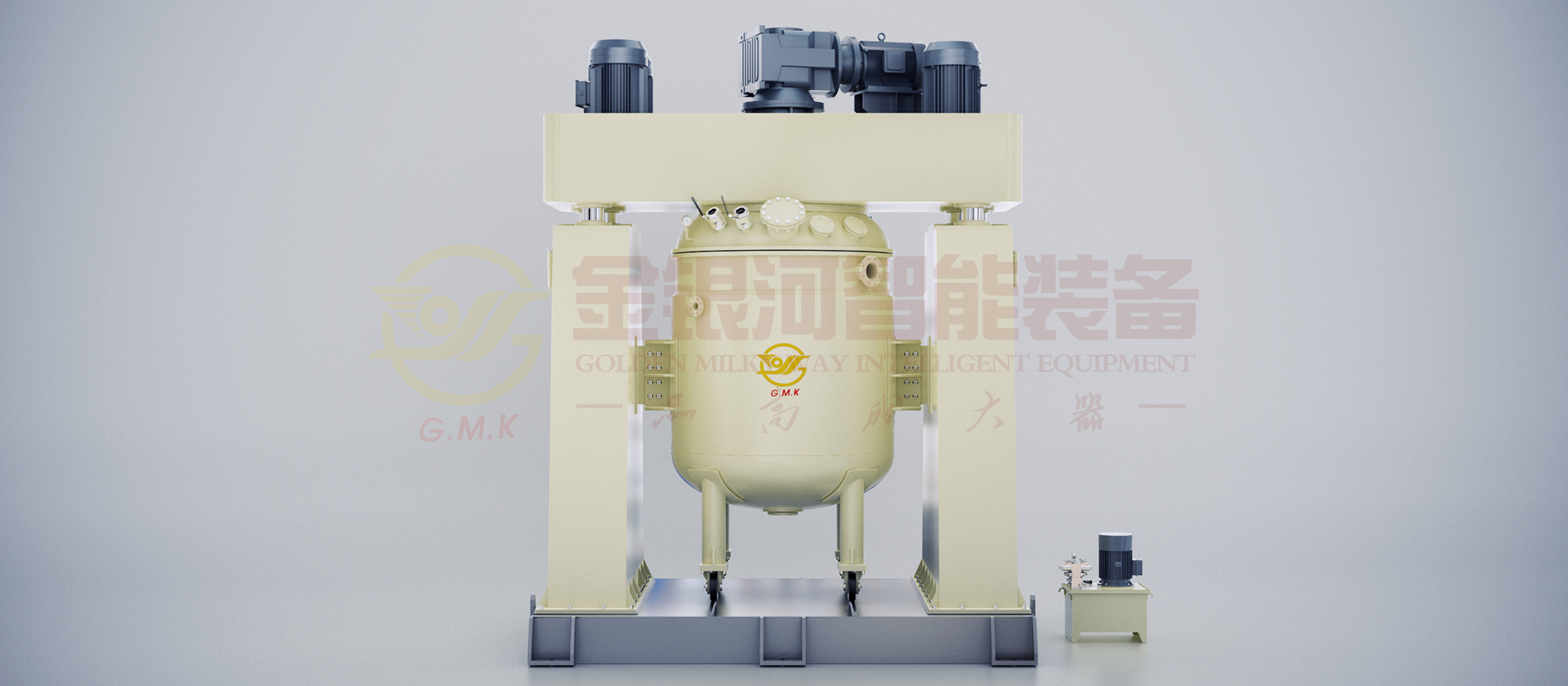 本机由底座、横梁、立柱、釜盖、釜体、升降系统、传动系统、电控系统及液压系统组成;