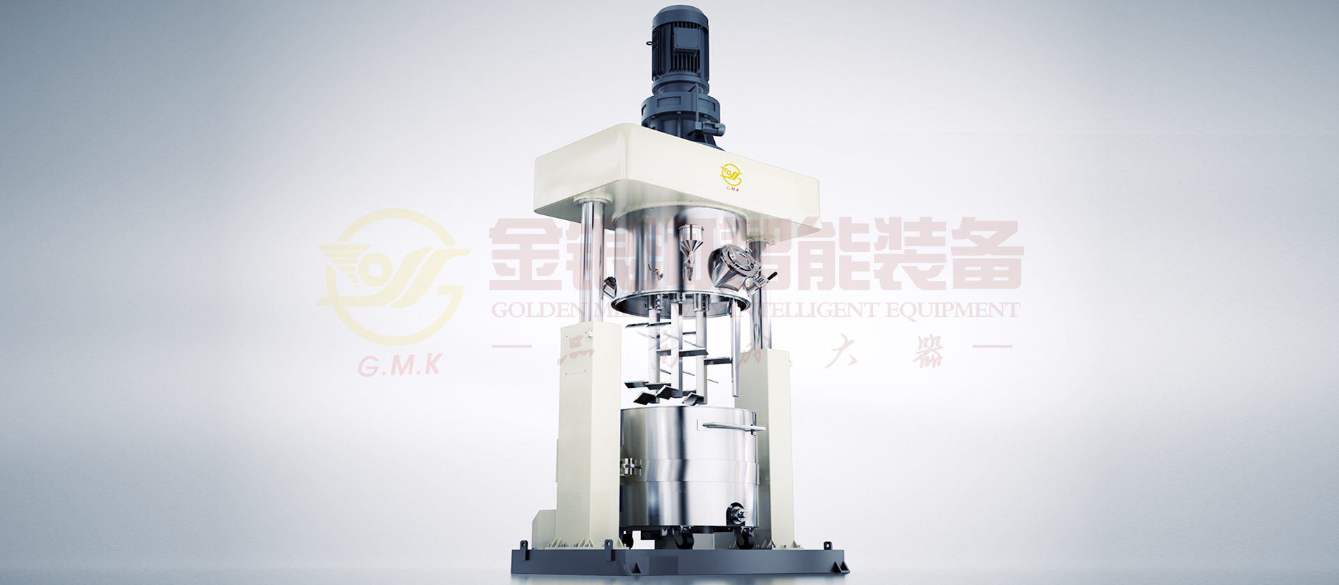 行星搅拌机是一种高效无死点混合搅拌设备,釜内有两根或三根搅拌桨,搅拌桨在绕釜体轴线公转的同时,又绕自身轴线高速自转,其速度可变频调速,使物料作复杂的运动,受到强力的剪切和混合,釜内设自动刮壁和刮底装置,将粘附在釜壁上的物料刮下,实现无死点、高效混合。该设备适用于食品、能源、粘胶、电子电器、氟硅、医药、化妆品、日化等行业生产。