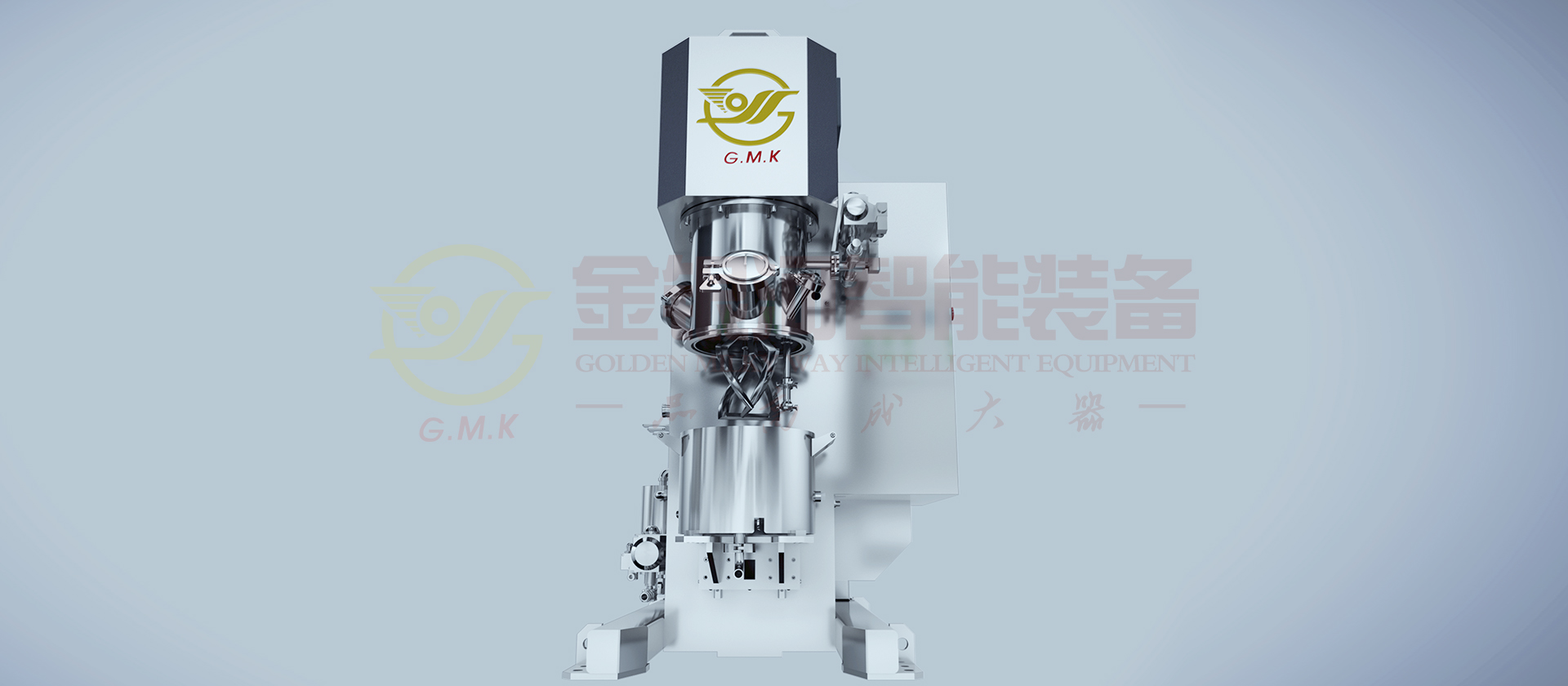 双行星动力混合机是结合了传统双行星搅拌机和高速分散机的原理,组成的一种高效的新机型,目前在新能源领域有着广泛的应用。 我司针对锂电池、电容浆料特性,在原行星式动力搅拌机的基础上,开发了具有高转速,大扭矩的增强型动力混合机,适用于干混、湿混工艺制备锂电正负极浆料。在设计过程中,我司充分考虑了搅拌器的合理转速、搅拌功率、分散线速度及合理的麻花桨形,减少高粘稠物料的阻力和桶内湍流强度的分布等因素,设计出更高效、更稳定的双行星动力混合机,可处理高黏度的浆料。